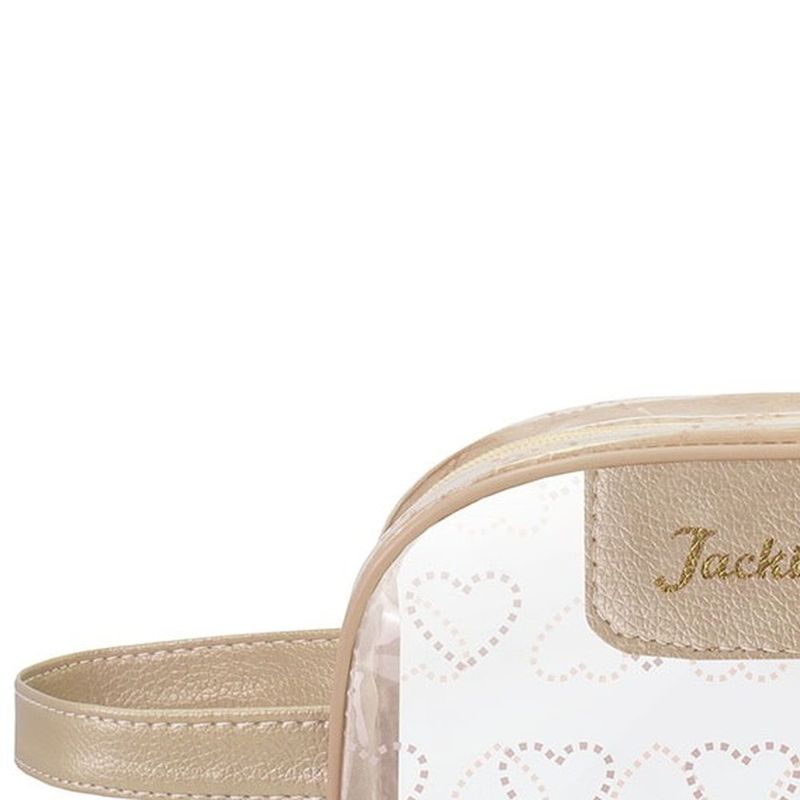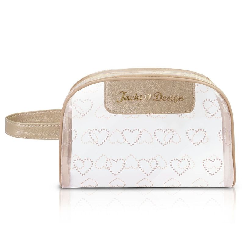 Descubra a Nécessaire com Alça Love Dourado da Jacki Design, uma excelente opção para manter seus itens essenciais organizados com estilo e praticidade. Esta necessaire transparente da coleção LOVE, com seus detalhes de corações e acabamento dourado, apresenta um design elegante e feminino. Fabricada em PVC transparente, é impermeável, fácil de limpar e permite a visualização rápida do conteúdo, otimizando seu tempo. Com amplo espaço interno e fecho em zíper, assegura a segurança dos seus pertences. É ideal para uso diário ou para complementar sua bagagem em viagens, harmonizando com outros itens da linha Love.