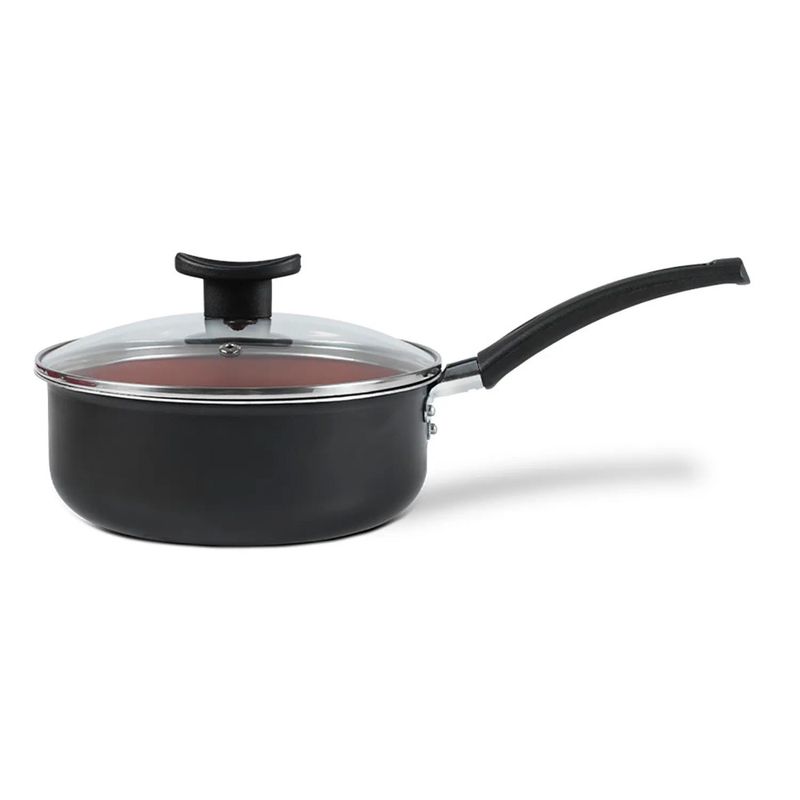 A Panela com Tampa Brinox Topázio Antiaderente Pro-Flon Ø18cm 1,8 L Cinza Range é um utensílio essencial para quem busca praticidade e elegância na cozinha. Desenvolvida para o dia a dia, esta panela Brinox Topázio é ideal para o preparo de arroz, purês e molhos, oferecendo um desempenho otimizado para porções na medida certa. Seu revestimento antiaderente Pro-Flon permite cozinhar com menos óleo e simplifica a limpeza, enquanto a estrutura em alumínio assegura um aquecimento uniforme e acelera o tempo de cocção. Com um design sofisticado na cor Cinza Range, a panela inclui uma tampa de vidro temperado com saída para vapor para maior controle e cabos e pomel em baquelite que não aquecem, garantindo um manuseio seguro e confortável. Além disso, é PFOA free e produzida no Brasil com energia 100% renovável.