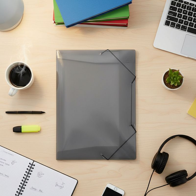 A Pasta com Elástico Brezze Fumê - Dac é a solução para quem busca organização e proteção eficiente para documentos e papéis. Fabricada em Polipropileno translúcido, um material atóxico, impermeável e resistente, esta pasta garante a segurança e a integridade de seus arquivos. Seu design prático, no formato ofício e sem lombo, aliado ao fechamento seguro com elástico, torna-a ideal para uso diário no trabalho, escola, faculdade ou em casa, mantendo tudo organizado e acessível.