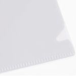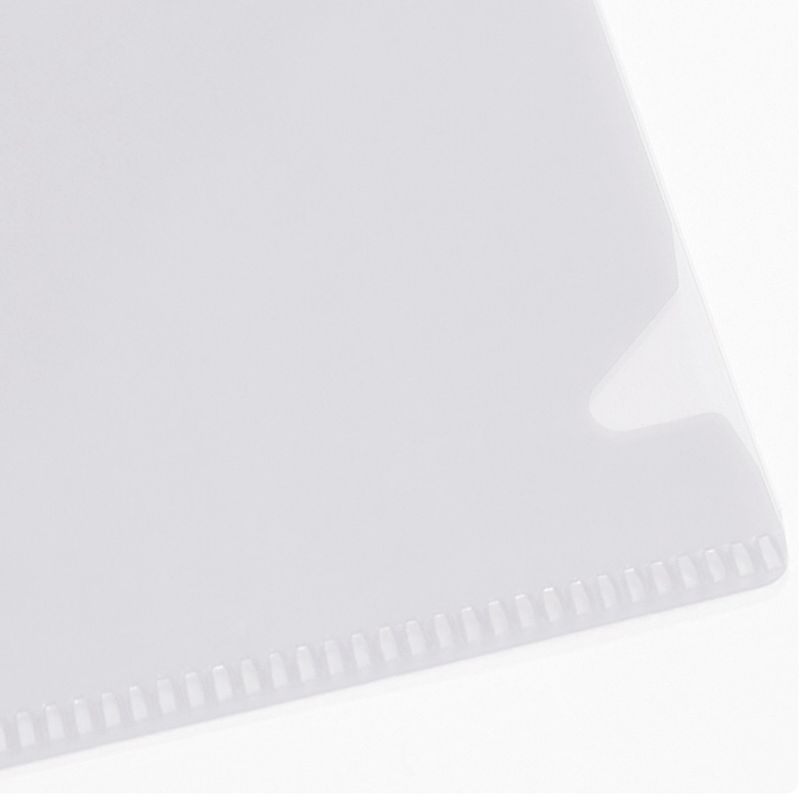 O design transparente com acabamento liso e brilhante permite a visualização rápida do conteúdo, facilitando a identificação dos documentos. Além disso, o corte em meia-lua na borda agiliza a inserção e remoção das folhas, otimizando o manuseio.