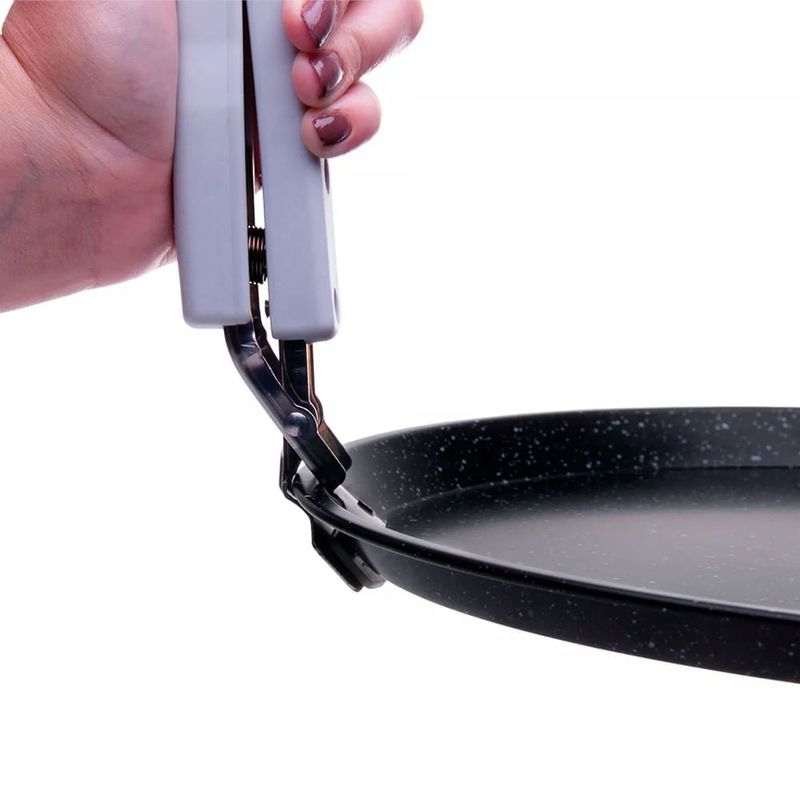 Sistema de trava integrado: Assegura um agarre firme e seguro em assadeiras quentes, prevenindo acidentes e facilitando o transporte.