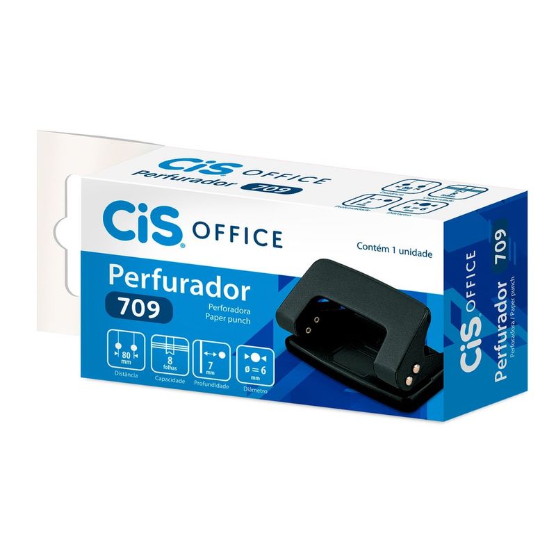 O Perfurador de Papel 709 Pequeno Preto - Cis é ideal para perfurar papel comum, como folhas de sulfite, assegurando cortes precisos e limpos para a organização eficiente de seus documentos em ambientes domésticos, escolares ou de escritório.