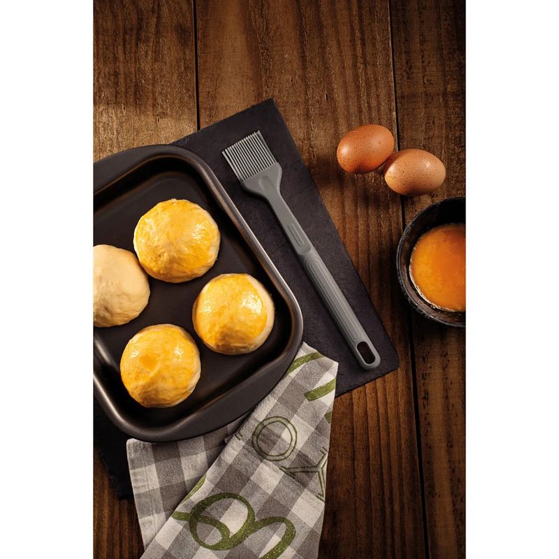 O design ergonômico do cabo proporciona um manuseio confortável e firme, garantindo maior precisão ao pincelar. O furo passante é um detalhe prático que permite pendurar o utensílio, otimizando o espaço e a organização em sua cozinha.