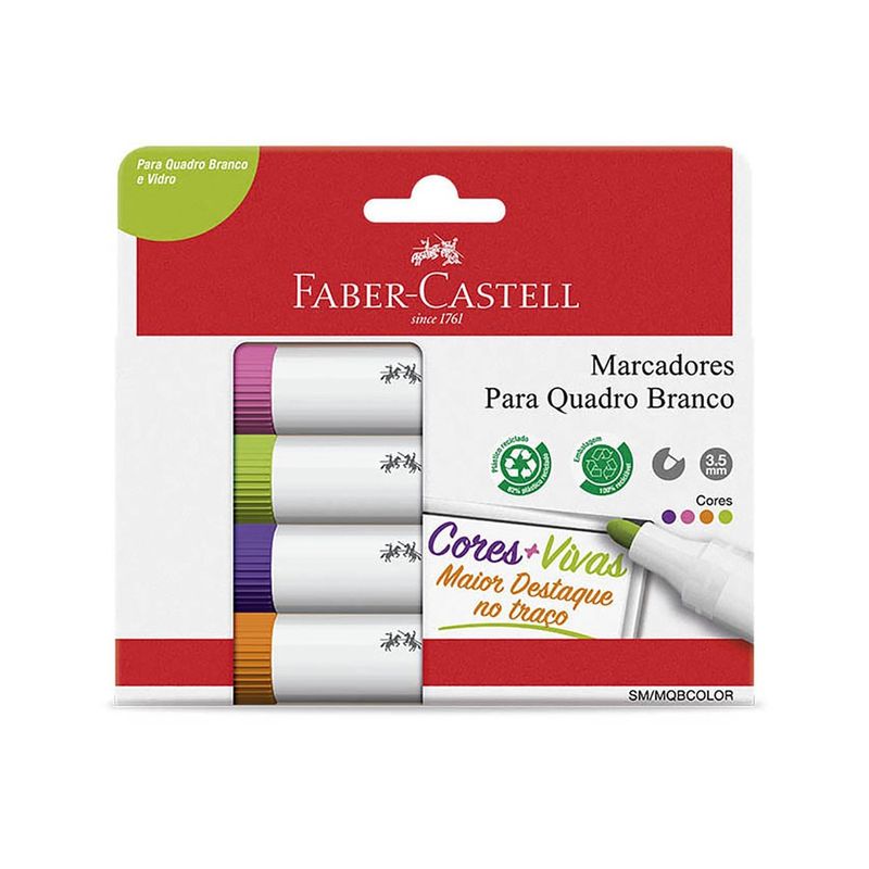 O Pincel Marcador para Quadro Branco 4 Cores Faber-Castell é a ferramenta para quem busca clareza e vivacidade em apresentações, aulas ou anotações. Com um conjunto de 4 cores vibrantes (rosa, verde, roxo e laranja), este pincel marcador Faber-Castell garante que suas ideias se destaquem, mesmo a longas distâncias, com um traço de 3,5mm. Desenvolvido para uso em quadro branco e vidro, oferece uma escrita suave e remoção fácil a seco, permitindo correções rápidas e sem manchas. Sua ponta tipo bala e a secagem rápida otimizam o uso, enquanto a composição em plástico 82% reciclado reforça o compromisso com a sustentabilidade.