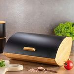 Projetado para ser funcional e compacto, o Porta-Pães de Bambu Preto possui dimensões de 25,0 x 16,0 x 35,0 cm. Este espaço interno é otimizado para acomodar diferentes tipos de pães, desde fatiados até artesanais, ajudando a manter a cozinha organizada e os pães sempre à mão.