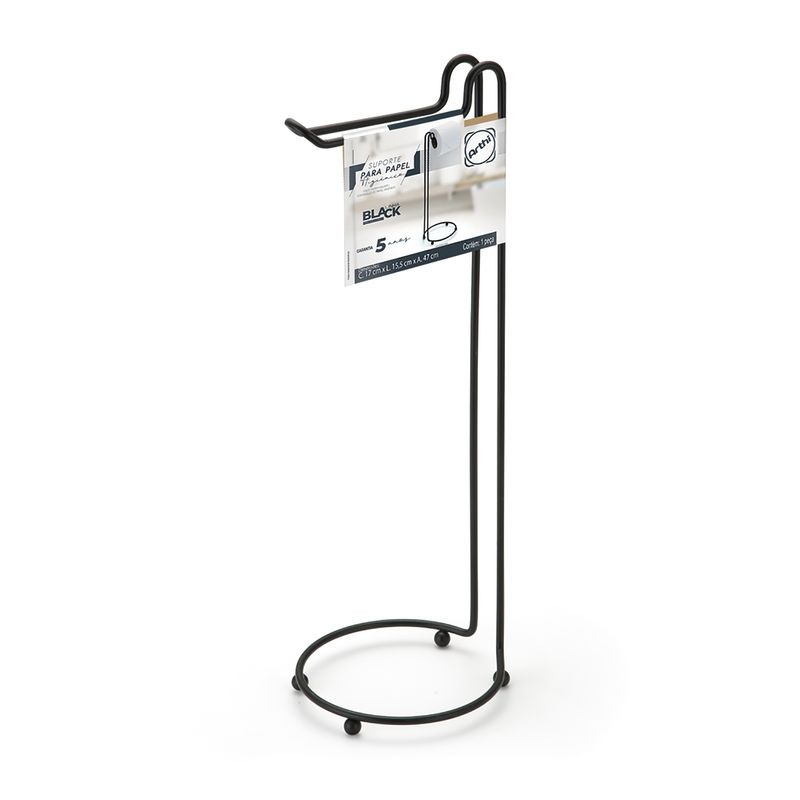 O Porta Papel Higiênico de Chão Preto - Arthi segue as tendências do aramado. Feito de aço, sua estrutura é resistente e comporta um rolo de papel. Possui design minimalista que oferece ao banheiro visual moderno.