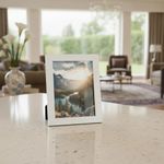Design Clássico e Versátil: A cor branca e o acabamento em madeira permitem que o porta retrato se adapte a qualquer ambiente, do moderno ao tradicional.