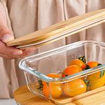 Este pote possui uma capacidade de 660 mL, ideal para armazenar diversos tipos de alimentos. Ele é composto por um corpo de vidro borossilicato e uma tampa de bambu com vedação hermética, combinando resistência e um toque natural.