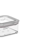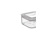 Design Otimizado e Empilhável: Seu formato quadrado e a capacidade de empilhamento proporcionam uma otimização inteligente do espaço na cozinha, facilitando a organização e o armazenamento.