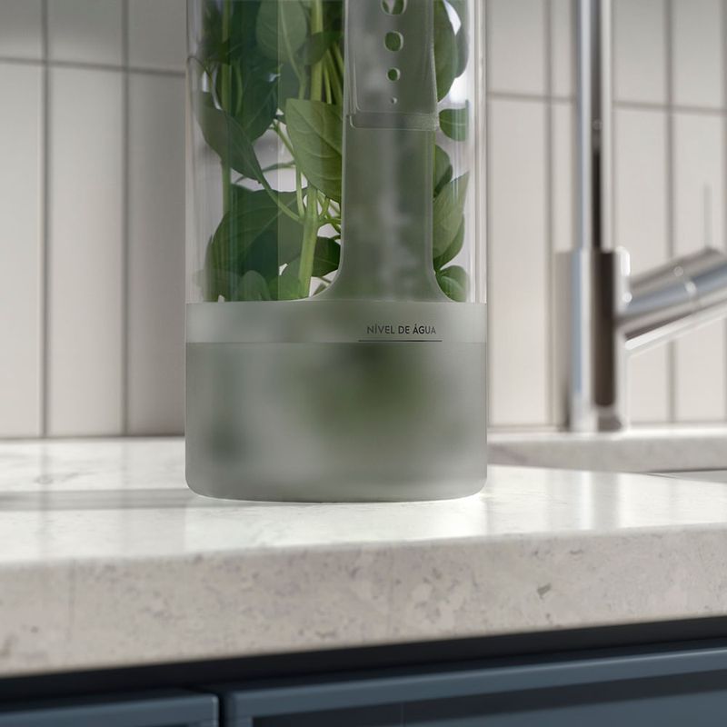 Feito de vidro, facilita a visualização dos temperos, além de contar com desfolhador, que otimiza a separação das folhas, marcador de nível de água e cesto interno com trava lateral e furos para drenagem que facilitam o manuseio.
