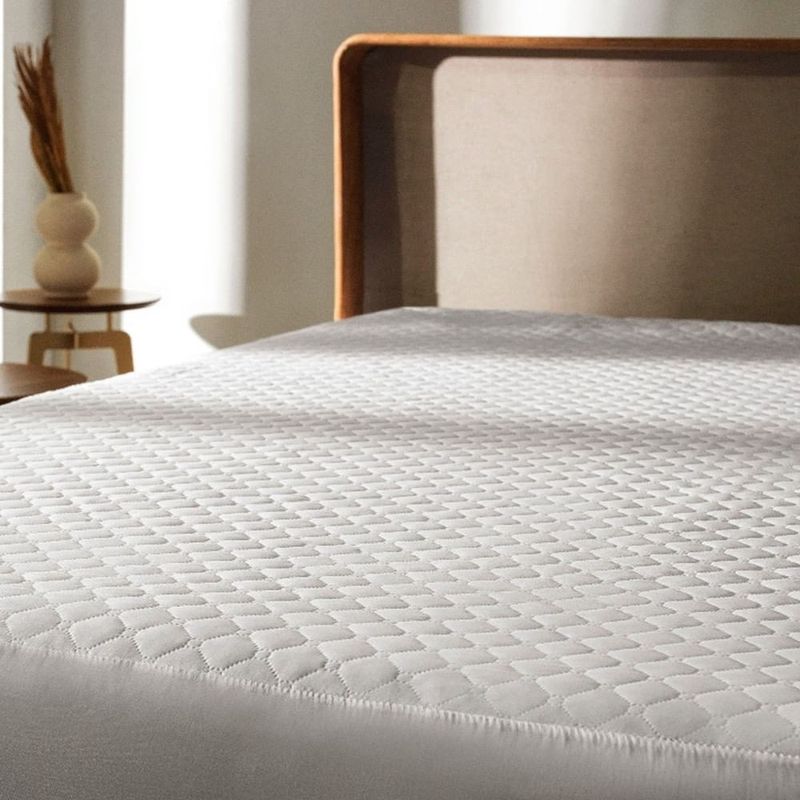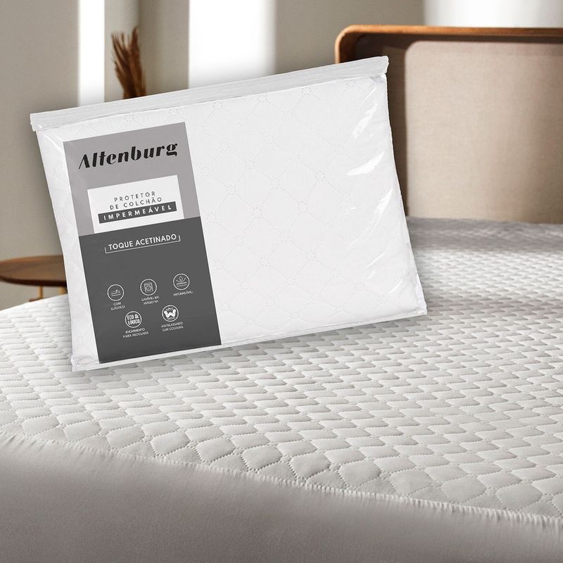 A superfície do protetor possui um toque acetinado, oferecendo uma sensação de maciez e conforto adicional, o que eleva a qualidade do seu descanso.