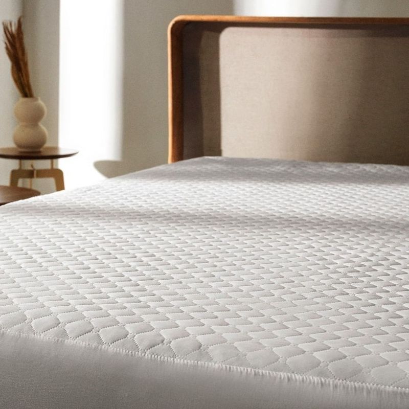 Ajuste preciso e seguro: Equipado com laterais em malha 100% poliéster e elástico em todo o contorno, o protetor se ajusta de forma firme e estável a colchões Queen de até 50cm de altura, evitando deslocamentos e garantindo cobertura completa.