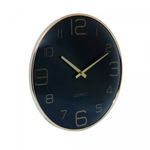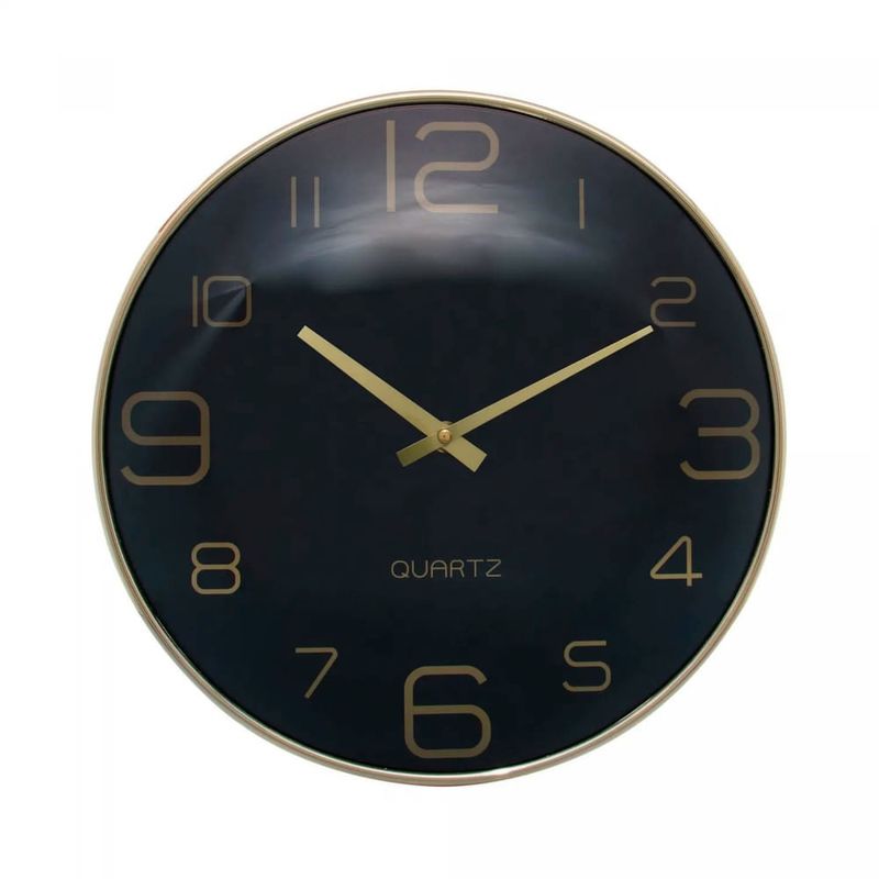 Com um design moderno, o relógio apresenta a cor preta como predominante, elegantemente complementada por detalhes em dourado. Esta combinação confere um toque de refinamento e contemporaneidade à sua decoração.