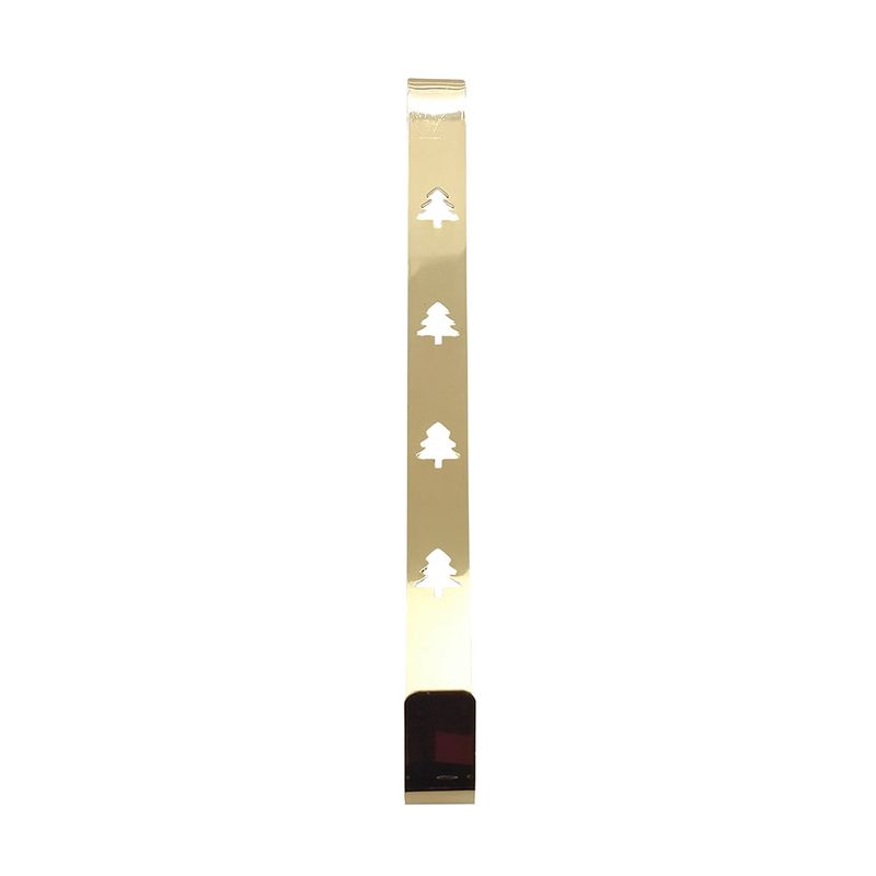 O Suporte Para Guirlandas Árvores 30cm Dourado - Magizi permite receber e alçar a guirlanda sobre a porta dispensando a necessidade de fazer furos ou reparos. O suporte é feito em metal e tem acabamento vazado.