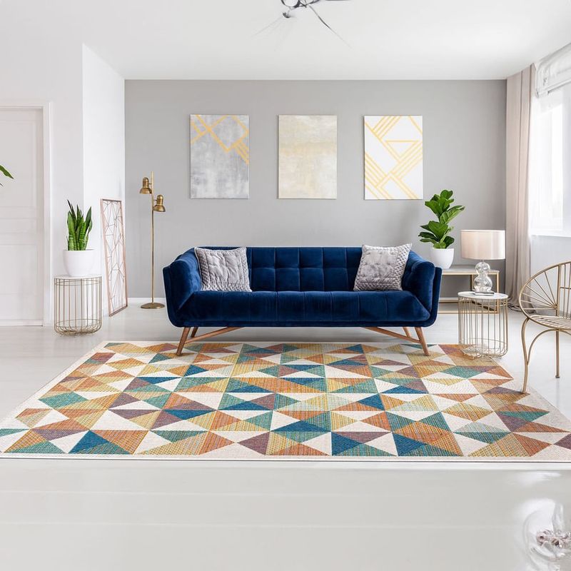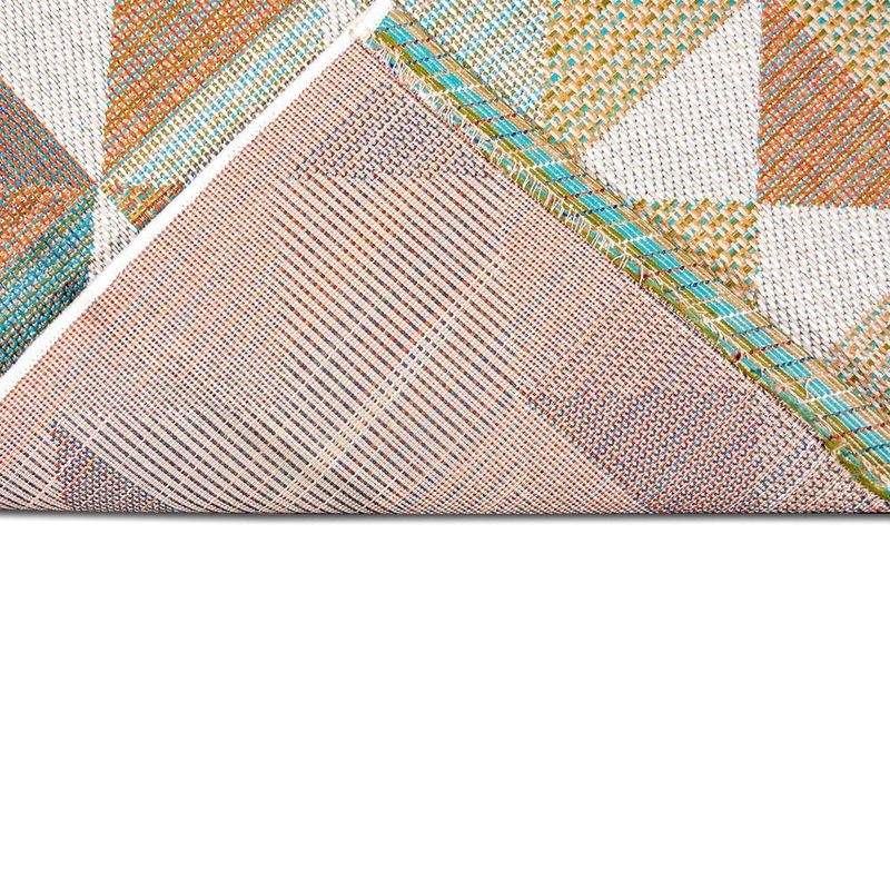 Combinação de cores Azul, Bege e Verde: Proporciona um visual contemporâneo e adaptável, permitindo que o tapete se integre harmoniosamente a diferentes estilos de decoração e ambientes.