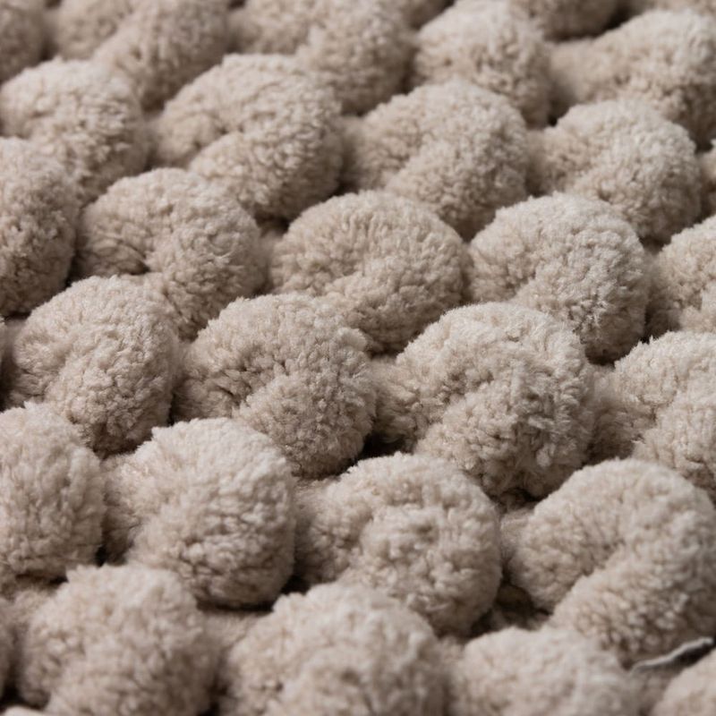 Composição de qualidade de 55% poliéster e 45% algodão, oferecendo elevada absorção de água e uma textura de pelo curto muito macia para seus pés.