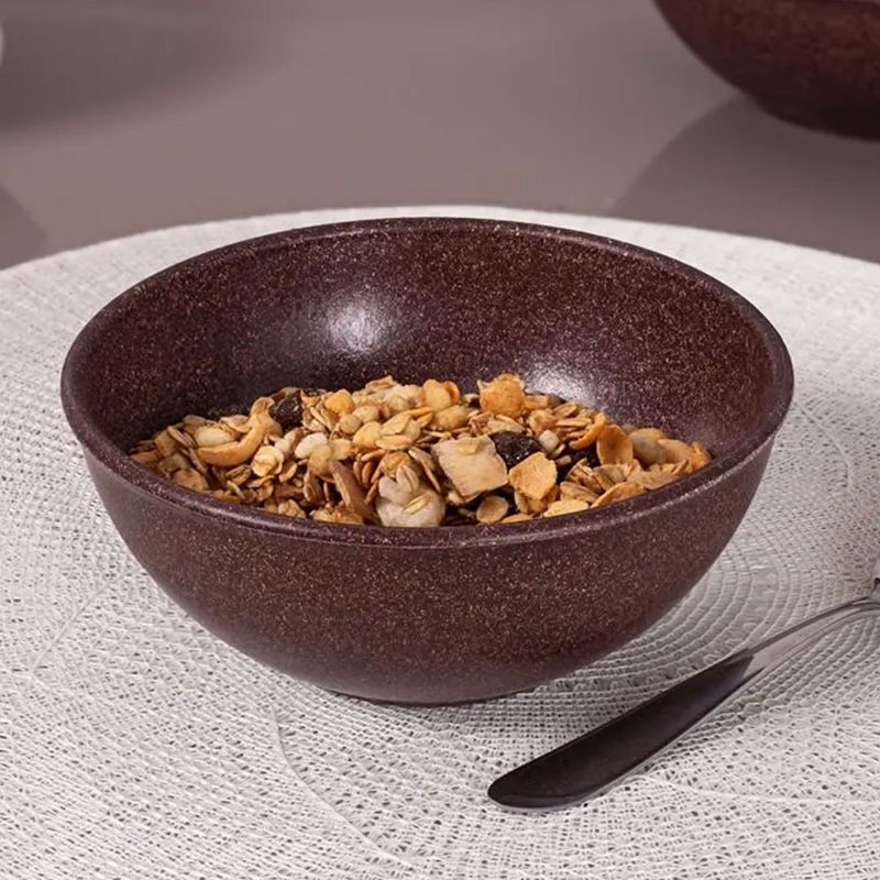 A Tigela 1L Imbuia - Evo é fabricada com uma inovadora fibra de madeira plástica. Este material confere à tigela uma resistência notável para o uso contínuo, ao mesmo tempo que a mantém leve e fácil de manusear. É uma escolha atual que combina a robustez necessária com a praticidade para diferentes usos culinários.
