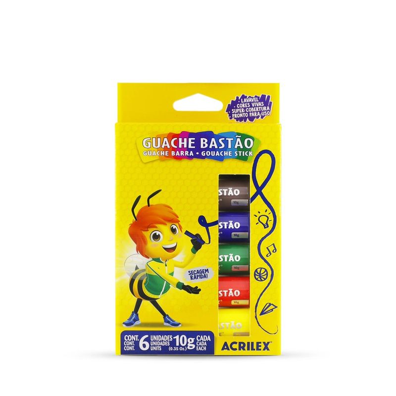Descubra a Tinta Guache em Bastão 6 Cores Acrilex, uma solução para dar vida às suas criações artísticas com praticidade e cores vibrantes. Ideal para arte e artesanato, esta tinta guache em formato de bastão oferece aplicação suave e direta, eliminando a bagunça e proporcionando cobertura com cores intensas. Sua fórmula de secagem rápida e não tóxica garante segurança e eficiência, permitindo que crianças e adultos explorem a criatividade em diversas superfícies como papel, cartolina e MDF.