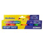 Cada frasco de Tinta Tempera Guache Neon Acrilex contém 15ml de tinta, proporcionando uma quantidade adequada para diversos projetos artísticos e escolares.