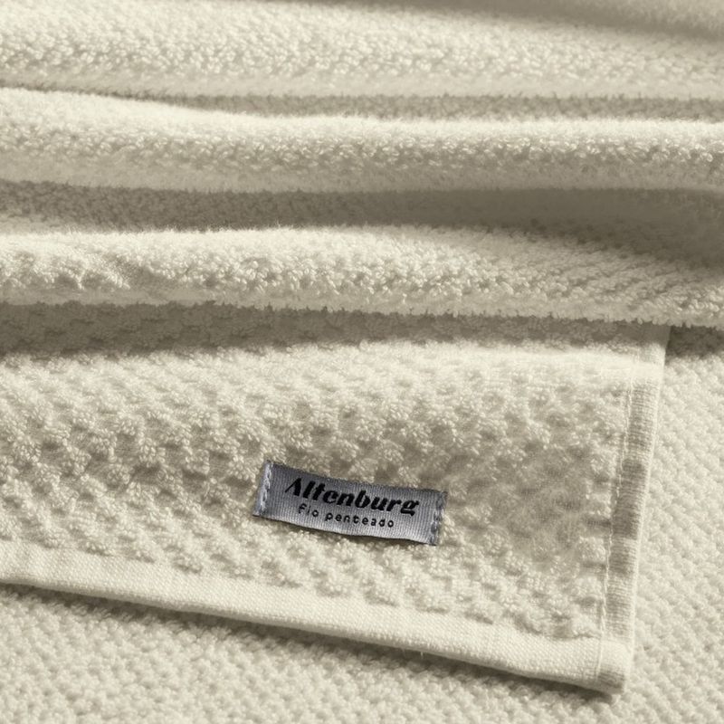 A Toalha Banho Buclê Bege Vanilla - Altenburg possui dimensões de 70cm x 1,40m. Sua gramatura é de 450 g/m², o que assegura uma alta capacidade de absorção e resistência.