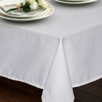 A Toalha de Mesa Retangular 1,45x2,70m Rafia Branco - Branyl é confeccionada em 100% Poliéster. Este material confere ao produto grande resistência, resistência a amassados e facilidade de manutenção, tornando-o prático para o dia a dia e eventos especiais.
