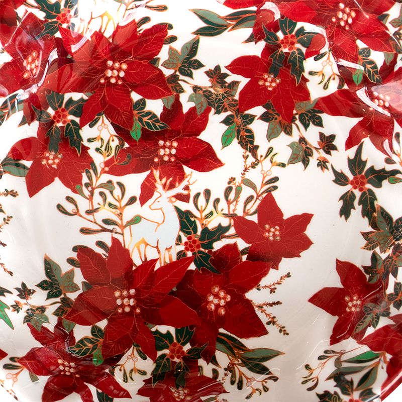 A Travessa Redonda Natalina Decor 23x23cm - Yangzi é a escolha ideal para deixar sua mesa de Natal ainda mais charmosa e acolhedora. Perfeita para servir frutas, sobremesas, petiscos ou até mesmo para compor a decoração natalina. Feita pela fabricante Yangzi, a travessa é confeccionada em plástico de alta qualidade. Com estampa temática de flores vermelhas e folhagens verdes. Com dimensão de 3x23x23cm.