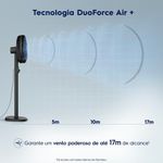Graças à Tecnologia DuoForce Air+, que combina o desenho aerodinâmico da hélice de 6 pás ao motor potente, ele proporciona um fluxo de ar com longo alcance de até 17 metros¹, distribuindo o vento fresco pelo cômodo.